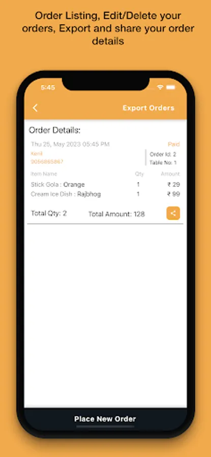 At the end of the day, the owner or employee can export all orders onto one sheet and share this sheet using any sharing app.