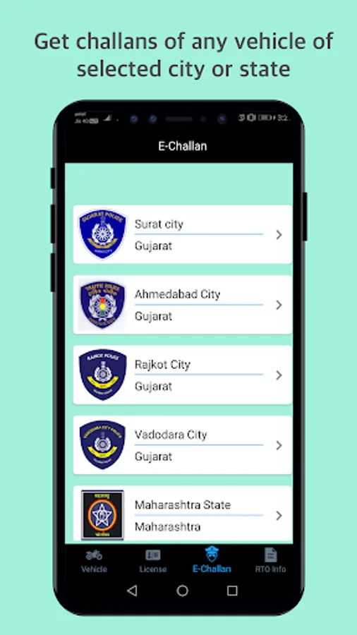 Right now, you can find challan of any vehicle listed under cities like Surat, Ahemdabad, Vadodara, and states like Maharastra and Uttar Pradesh.