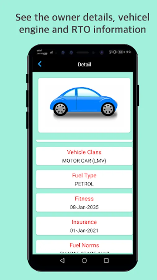 Get details for a car, bike, truck, taxi, scooter, or any other Indian Vehicle!