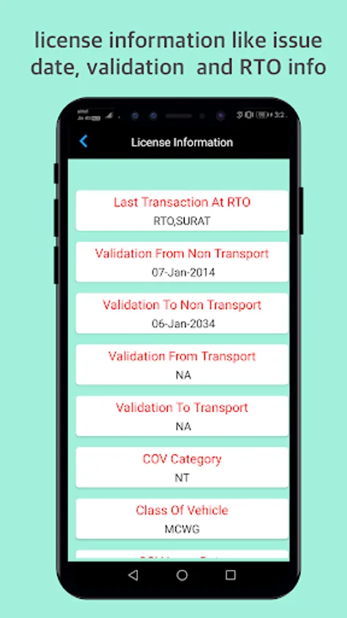 Want to know the information about your driving license? Just input your license id and get full information on it.