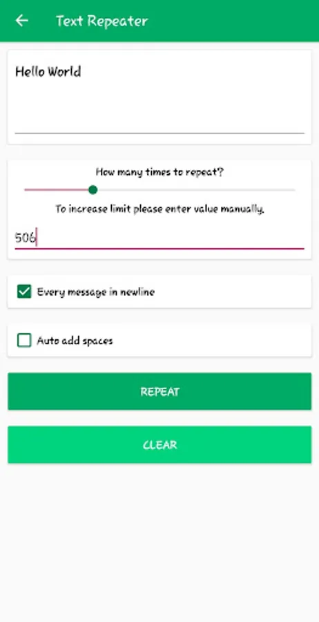 Flood your friend whats message, messenger, and other messaging account, with large text by duplicating your message using text repeater and sharing it to whats scan account.