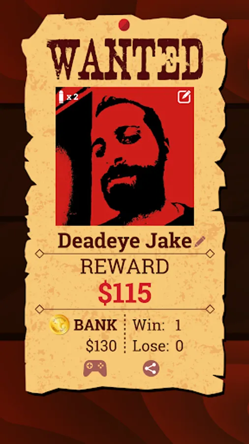 1v1 multiplayer game. Become a Gunslinger searching for bounties on the heads of other Gunslingers.