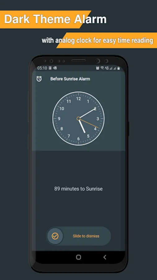 • Big analog clock on alarm display, helps you easily notice the time immediately.