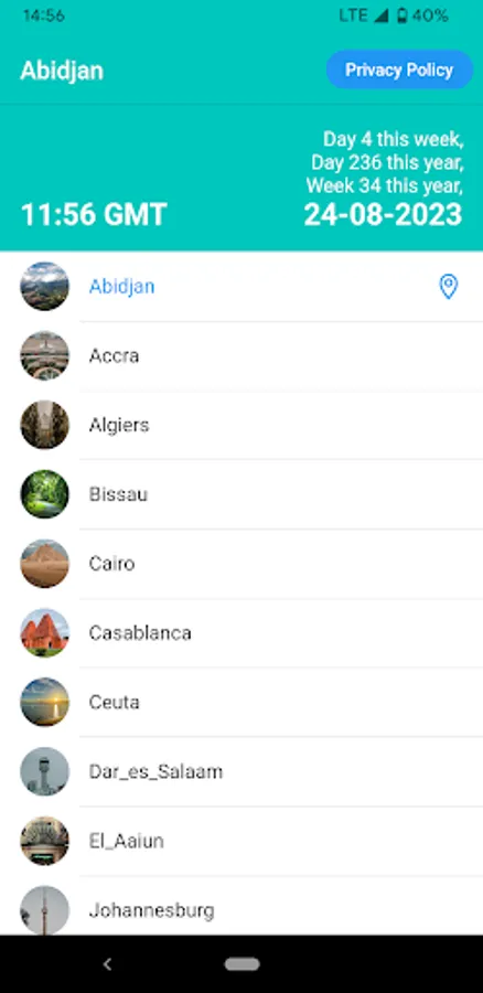 Keep track of the real local time for many cities in Africa. The app is integrated with the most accurate and sophisticated api known as worldtimeapi which continuously keep track of time of all these cities around the world.