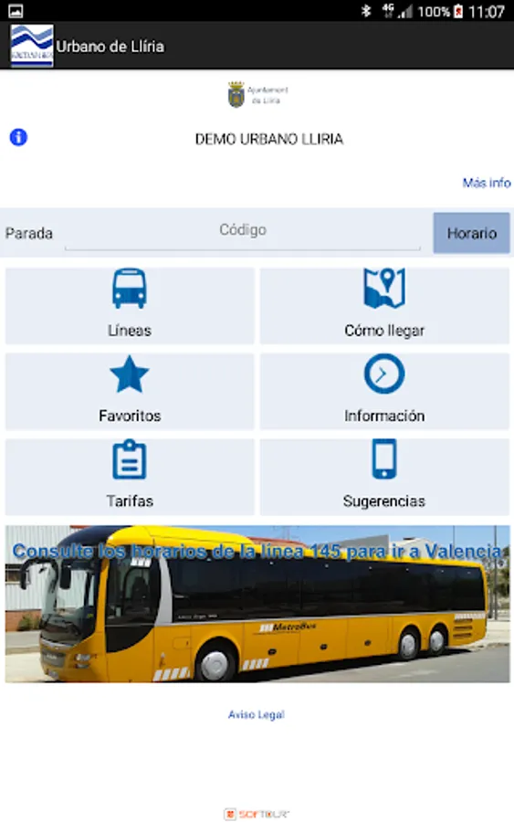 Llíria bus transport app, so that residents and visitors can access all the updated information on lines, stops, waiting times, incidents, nearby points of interest, and travel guide from their mobile phones. Practical and easy to use. The application has the following sections: