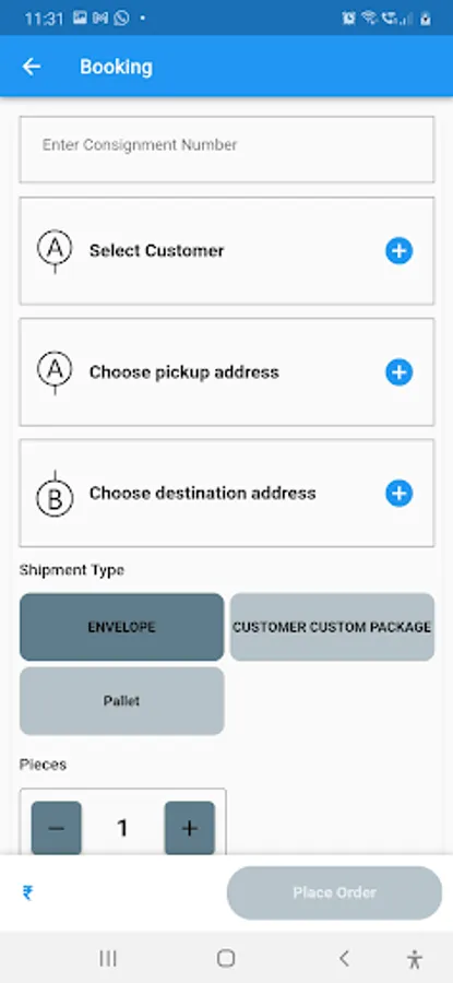 -Booking: Enter your location and drop off location and click on BOOK. Our partner will come and pick your shipment.