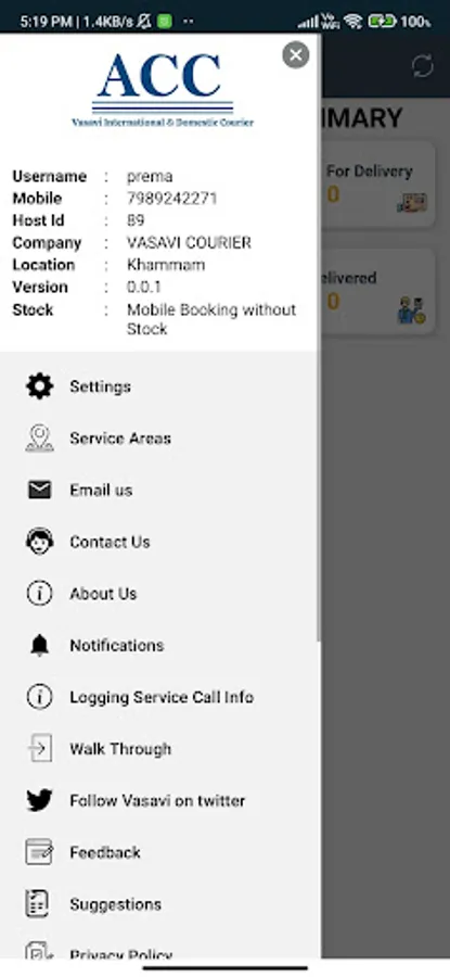 Vasavi Delivery app will be used by our drivers to do deliveries and pick ups. It provides them with information about their pick up and delivery schedule and helps them track their daily performance and monitor their progress in real time.