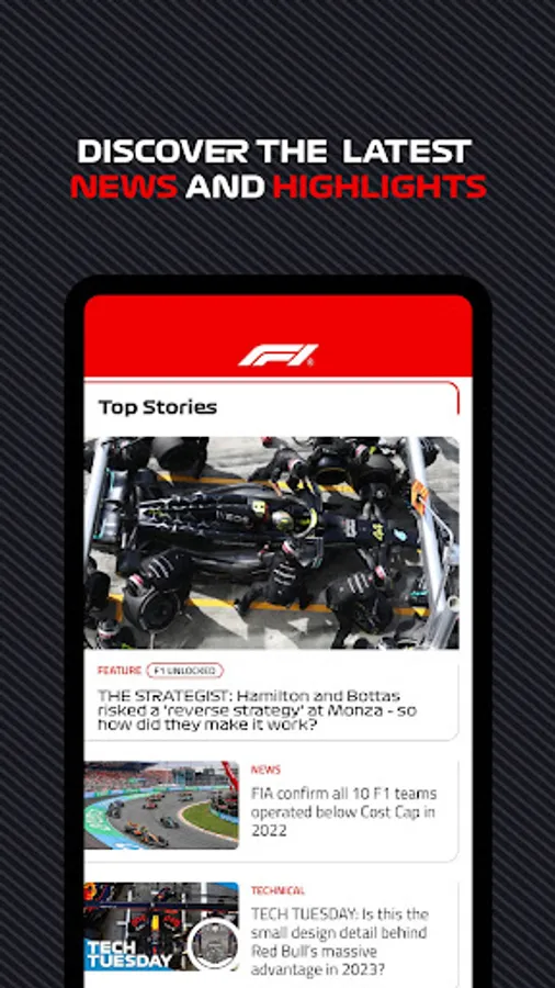 Experience Formula 1 like never before with our official app! Your one-stop hub keeps you updated with the latest F1 news, thrilling highlights, race results, action-packed videos, real-time results and detailed schedules.