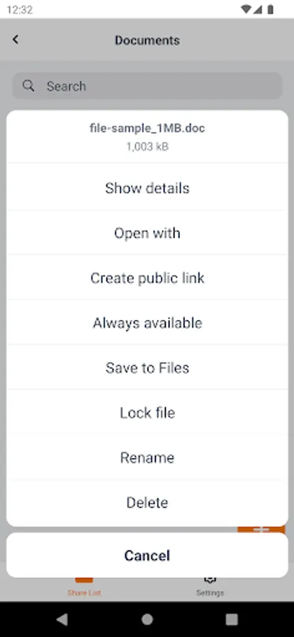 - View, open and share files directly from your device