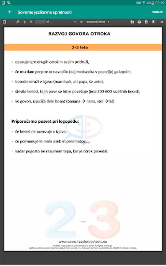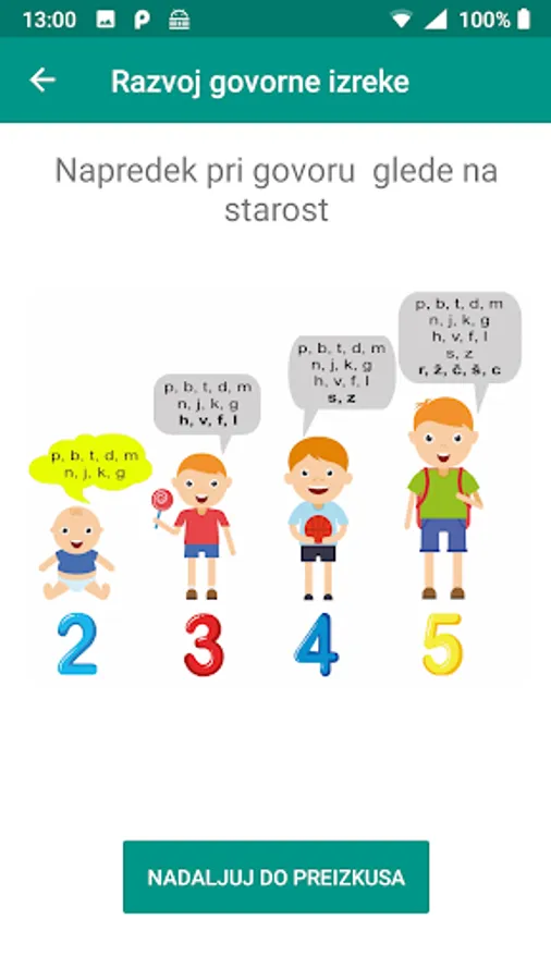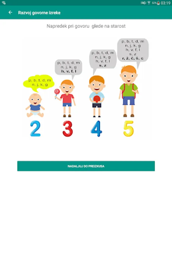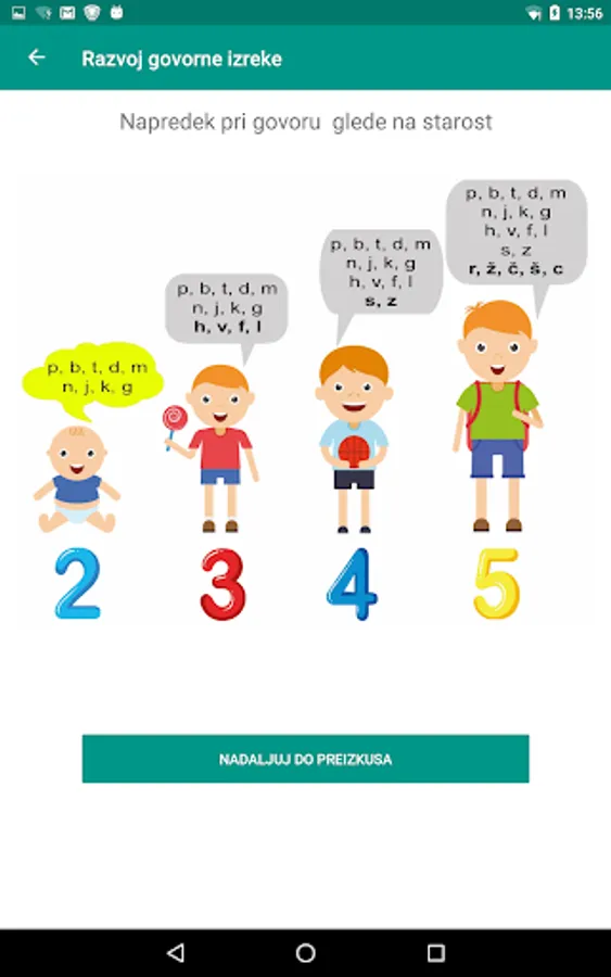 The application provides a test based on the child's age and helps to identify the child's language and communication skills.