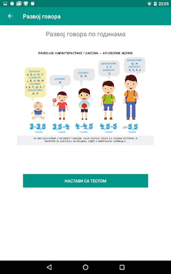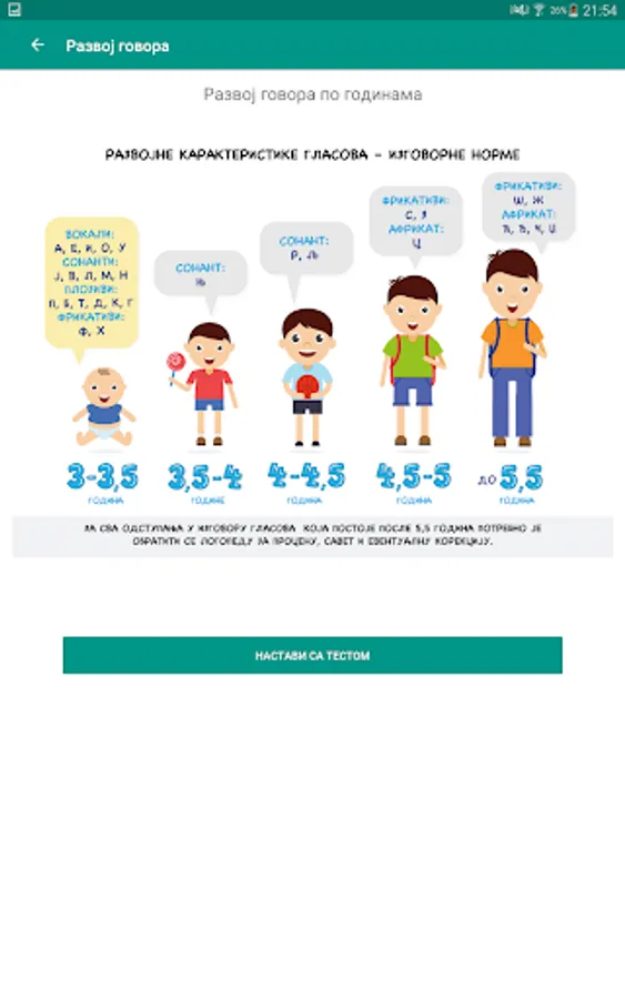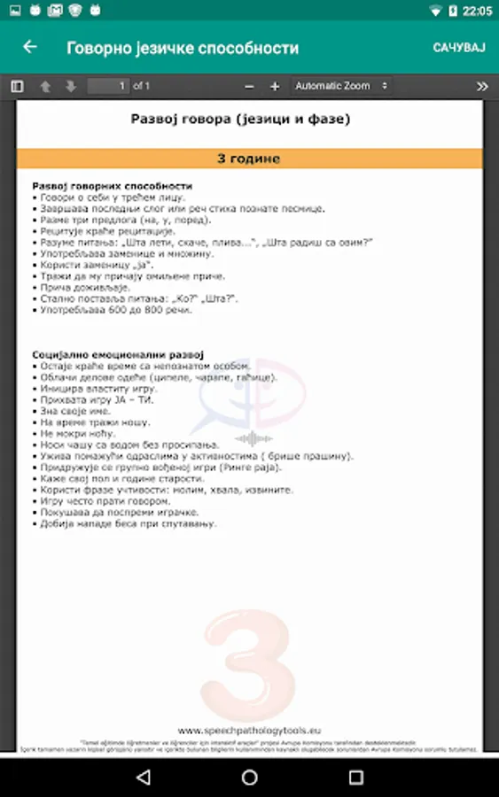 The application allows the use of an age-based test to assess children's spoken language and communication skills.