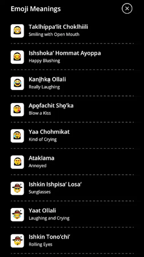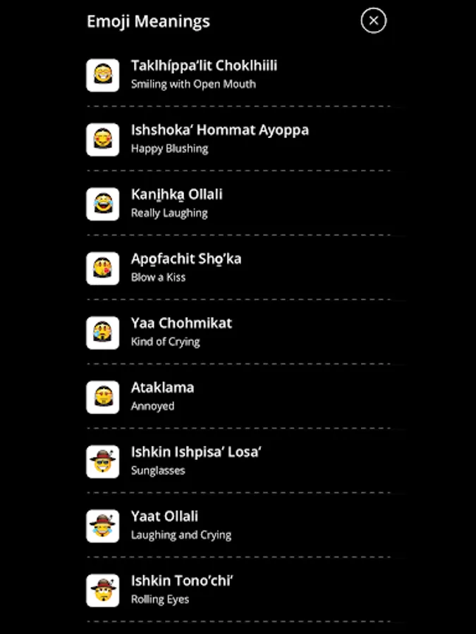 The Chikasha Emoji App incorporates emoji 2.0 designs reinterpreted through a Chickasaw design aesthetic and cultural framework. The emojis also include Chickasaw language textisms which are visual shorthand forms of words and phrases developed by learners of the Chickasaw language for daily use. The Chikasha Emoji App will allow users to include these fun and exciting Chickasaw emojis in their daily communications and interactions on mobile devices, social media, and the world wide web. For more on the history, culture, and language of the Chickasaw people see www.chickasaw.net, www.chickasaw.tv, www.chickasawlanguage.com, www.achickasawdictionary.com, and The Chickasaw Nation Culture and Humanities channel on YouTube.