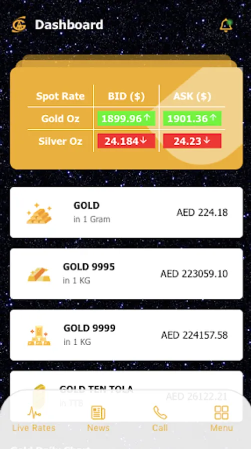 A detailed Gold Price for Amana Customers. This application can be installed by the customer to understand the pricing for each Gold Division as provided Amana.