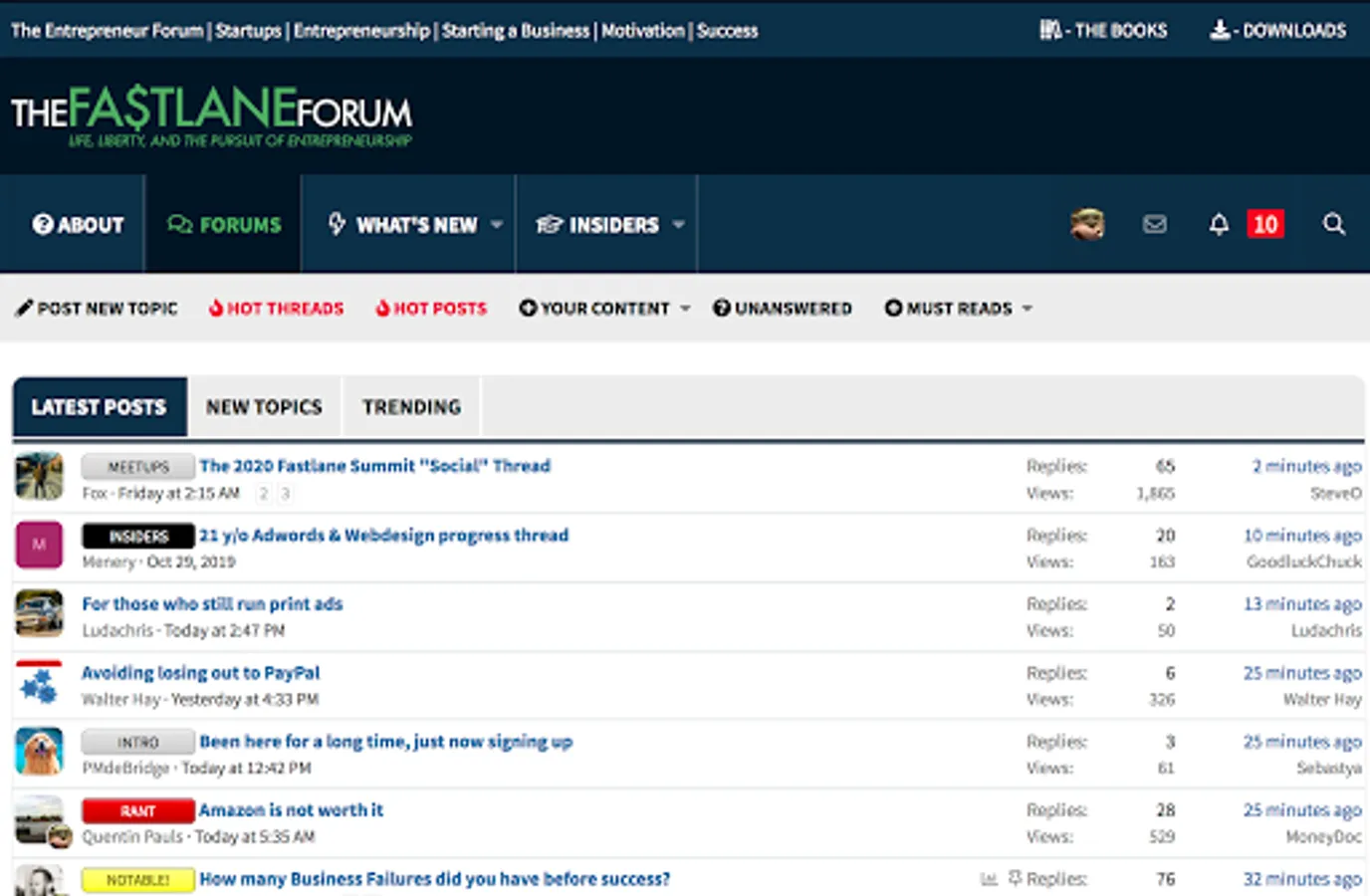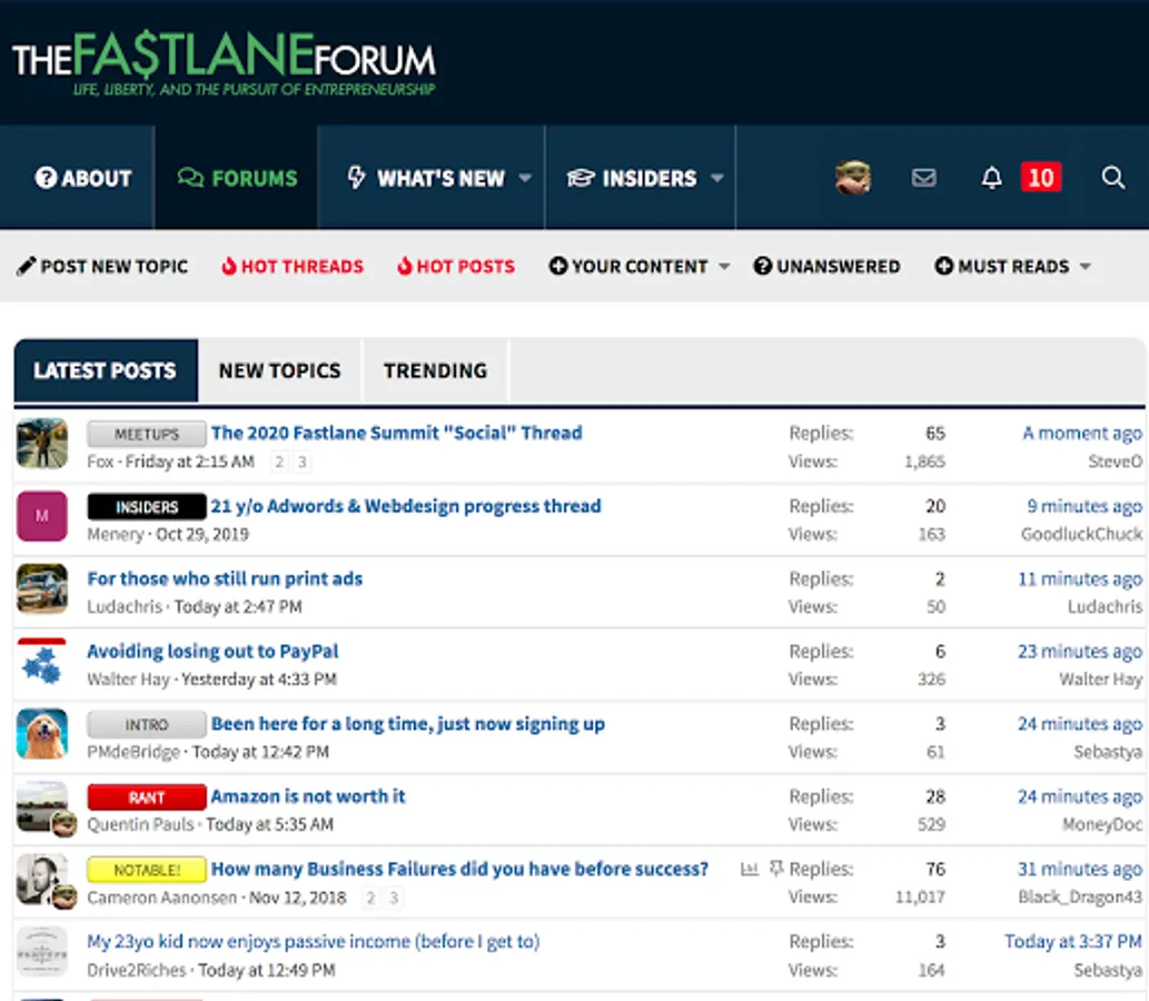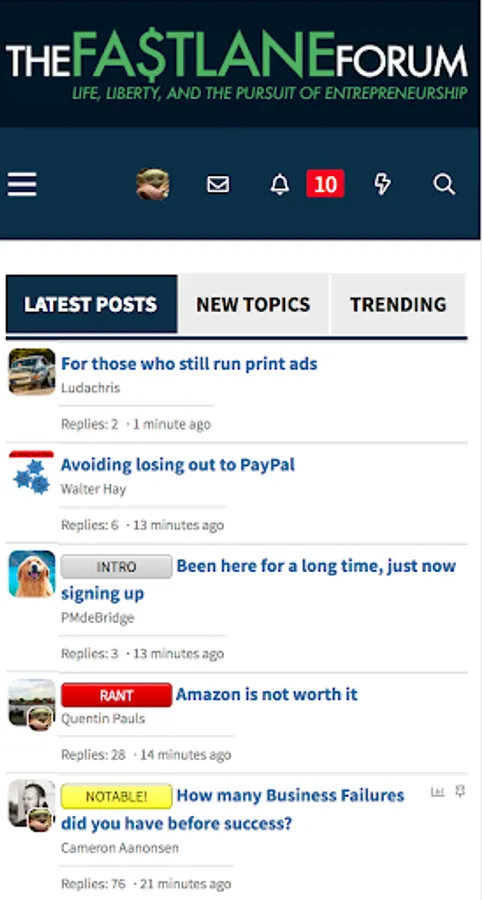 Discuss small business, startups, and entrepreneurship based on the CENTS Framework as authored by best-selling author MJ DeMarco. Topics range from business startup, optimal ideas, investing, funding, personal finance, motivation, financial freedom, namely early retirement independent of Wall Street and stock market returns. The Fastlane Forum features dozens of multi-millionaire entrepreneurs wiling to share their secrets, hacks, and tactics-- all for free.