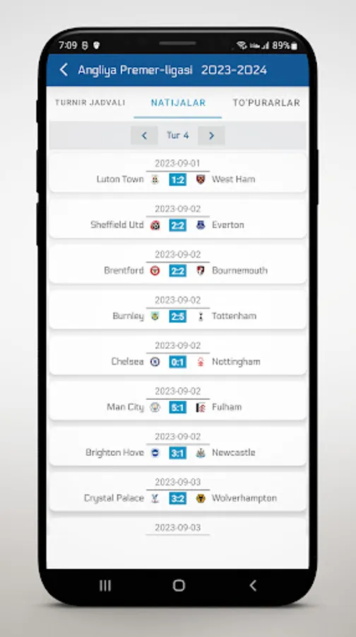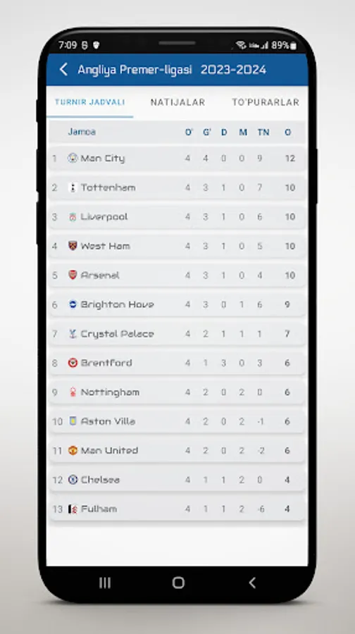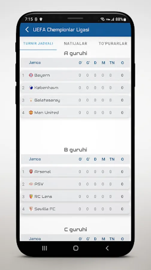 • Batafsil liga jadvallari va turnir jadvali