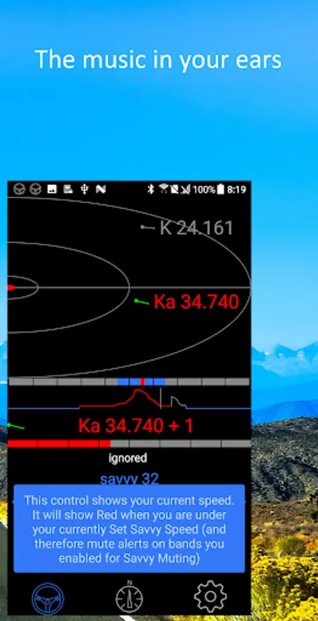 It has extensive audible options. Including Text-To-Speech of Band and Frequency. Audio can optionally use Hands Free Protocol [Future Release if Possible] (a phone call) on your car or motor cycle.