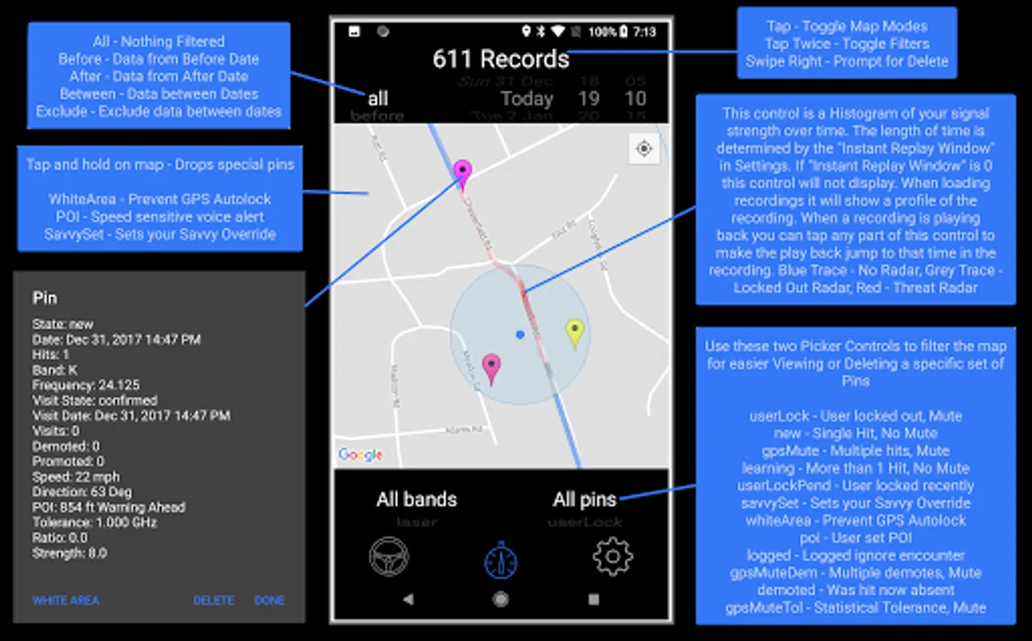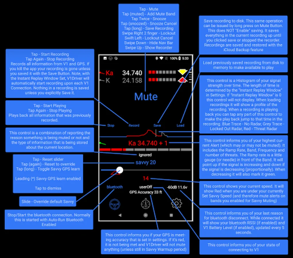 V1Driver takes the infamous V1 "Arrows" to a new level by displaying the bogeys on a 2 dimensional map. So you can track how close they are before waiting for the arrows to "flip" direction.