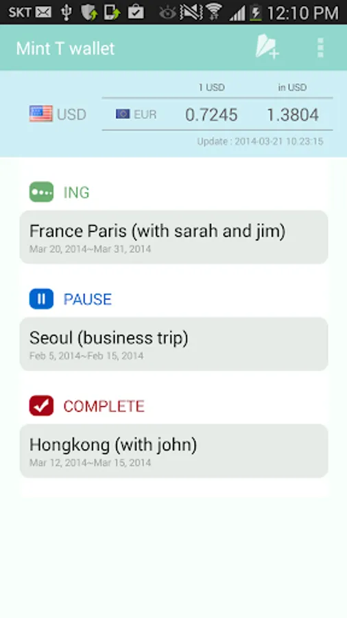 Create a personal ledger per travel: Budget setting, entry of various currencies, automatic/manual updating of exchange rates, etc.