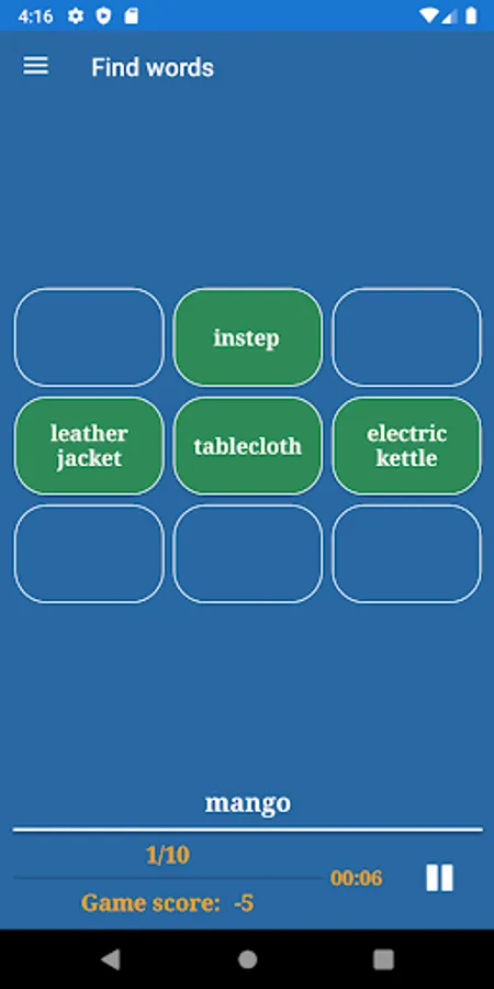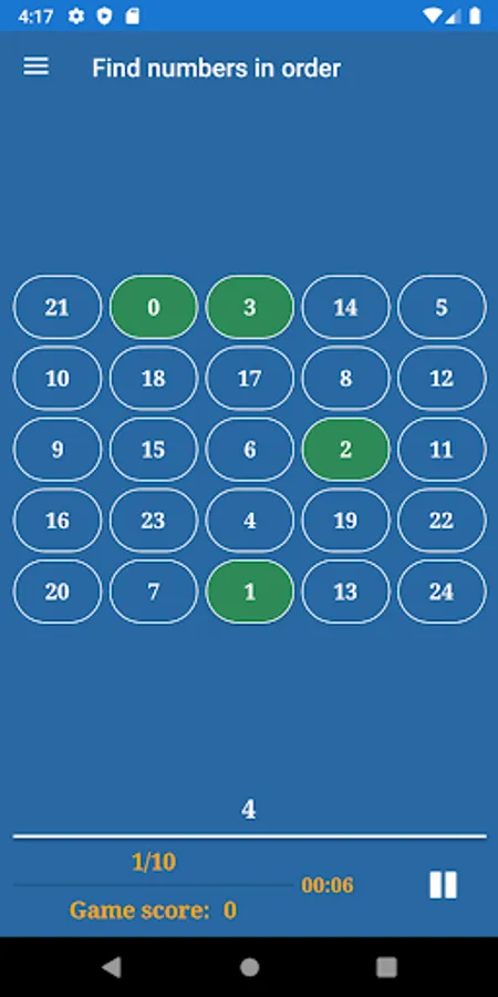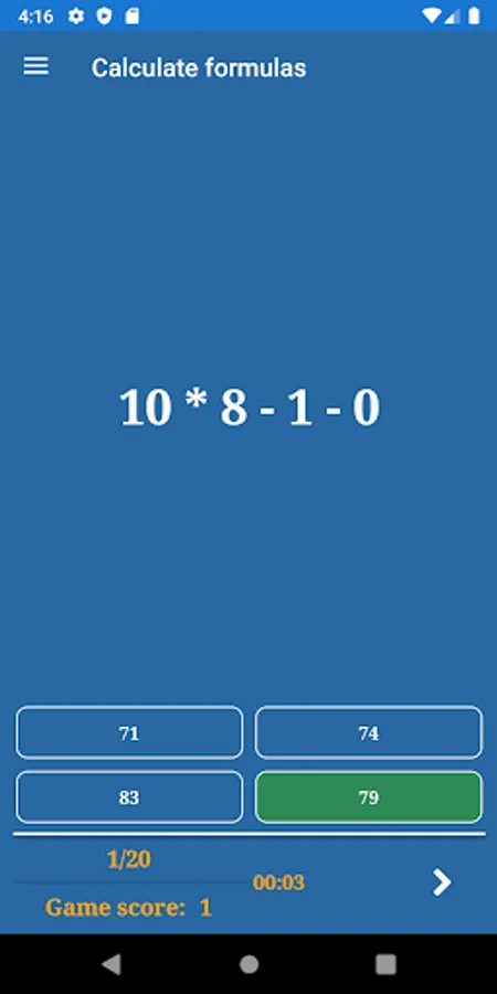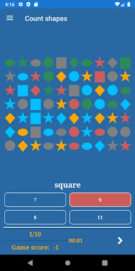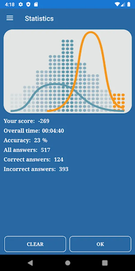 You can see statistics by choosing the menu item in the Main Menu. Information includes the overall score, accuracy, count of correct and incorrect answers.