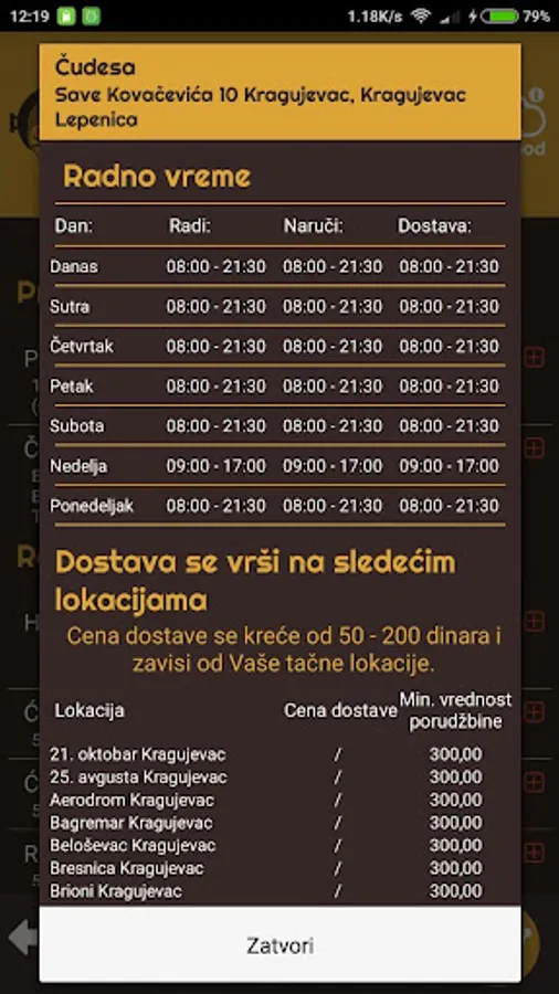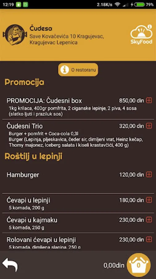 The Miracles application is used to order food from our restaurant in Kragujevac