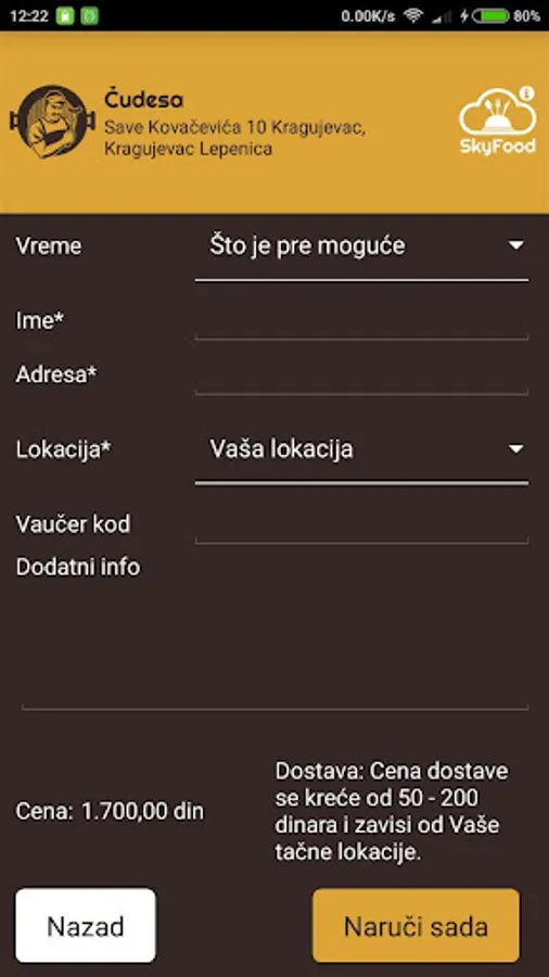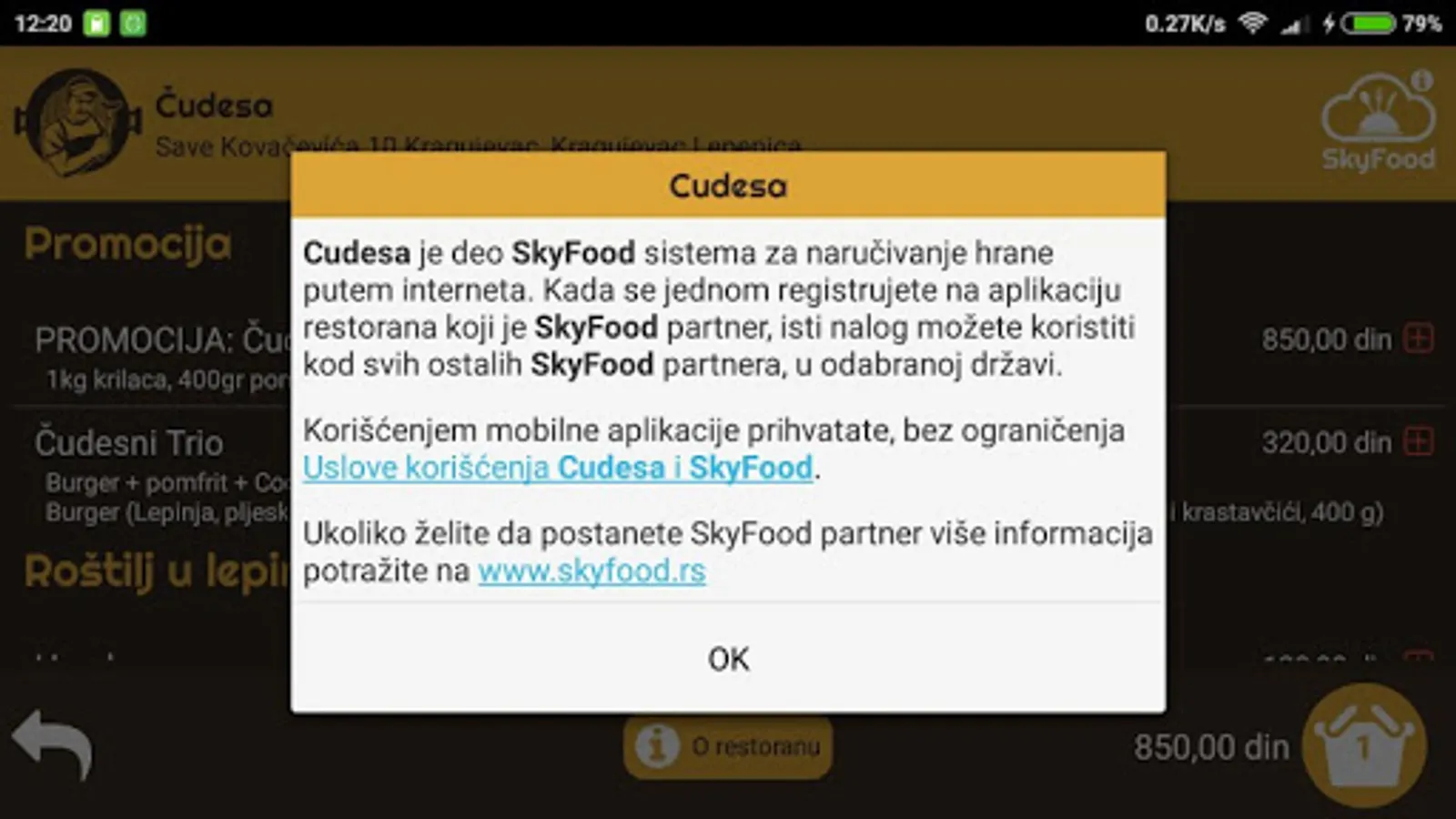 Food can be ordered through our site ( http://www.cudesa.rs ), or the Android app.