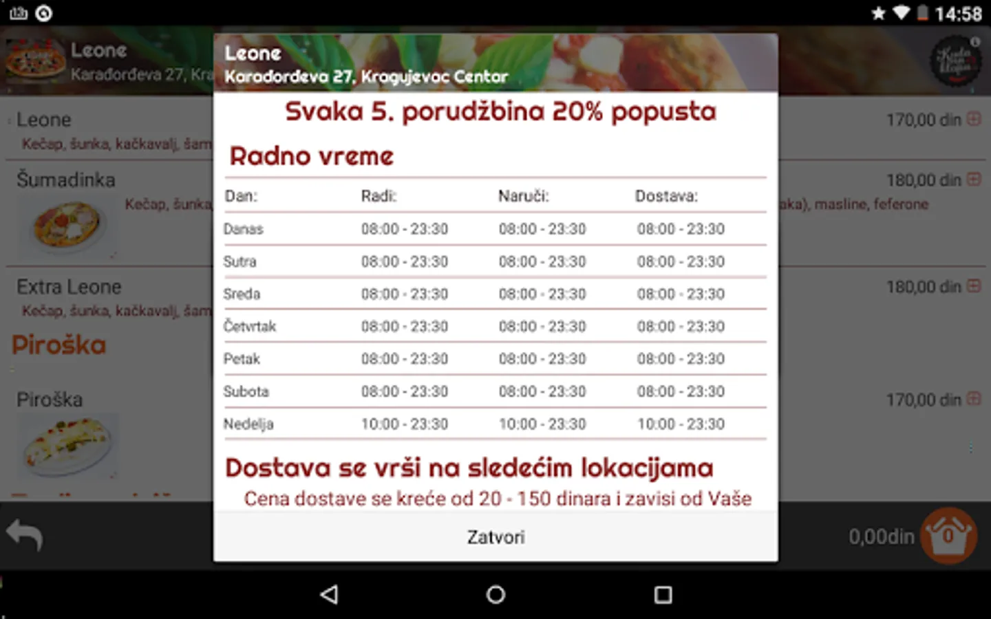 Where to eat now operates in Kregujevcu and Kraljevo. As soon as the conditions are met and cooperating with any restaurant in other cities, and they will become available in the system.