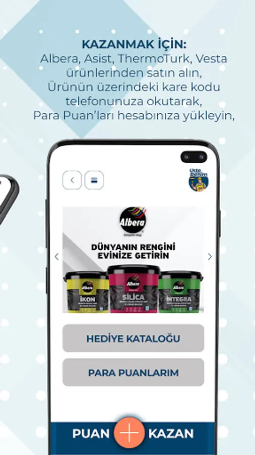 Buy from Albera, Asist, ThermoTurk, Vesta products, download the USTA MY application from your application store, scan the QR code on the product to your phone, upload your Money Points to your account, spend your Money Points as you wish at Usta Benim store, Buy more products, more earn more, spend more!