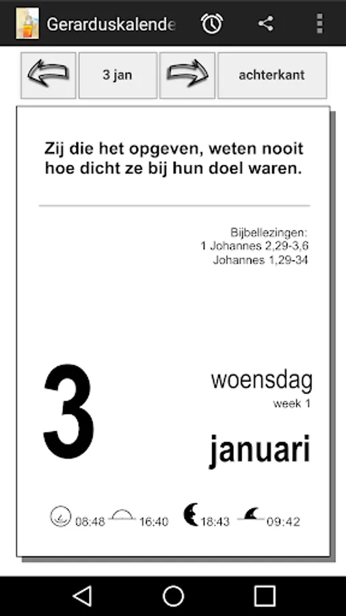 The Gerarduskalender is a day tear calendar and a kind of almanac. With this calendar you get 'a little spirit every day'. Each day has a spell on the front. In addition to the sun and moon phases, a large number of saints' feast days are mentioned.