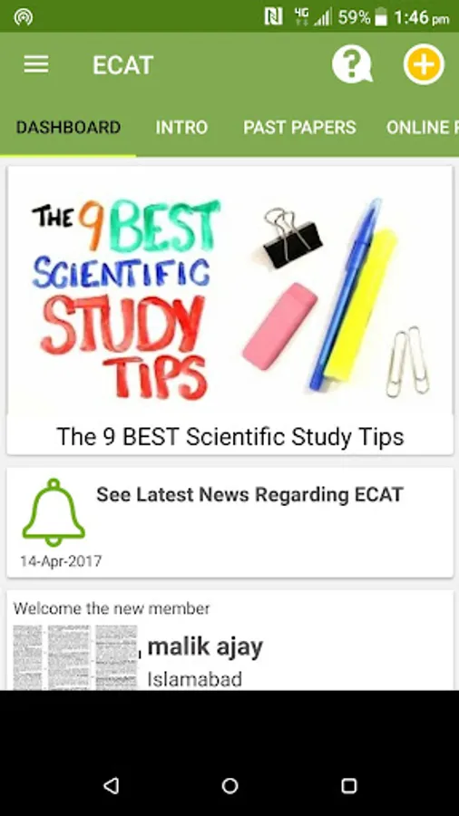 Also, you get get to connected with other student appearing in ECAT and you can ask questions. The app also contains a list of all ECAT preparation centers in various cities of Pakistan.