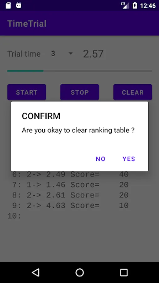 The elapsed time is displayed in 1/100 second increments of him, along with the score and ranking.