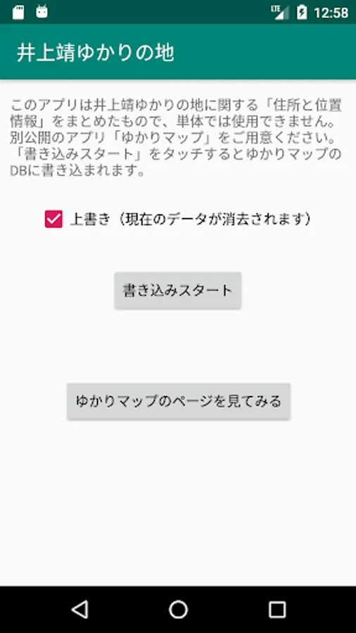 This app supplies data for another app "Yukari Map" and can not be used alone. Please prepare "Ykari Map" application in advance.
