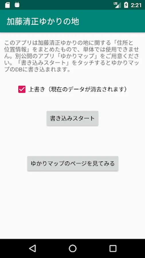 This app supplies data for another app "Yukari Map" and can not be used alone. Please prepare "Ykari Map" application in advance.
