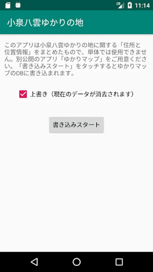 This app provides data for another app "Yukari Map" and cannot be used alone. Please prepare "Yukari Map" app in advance.