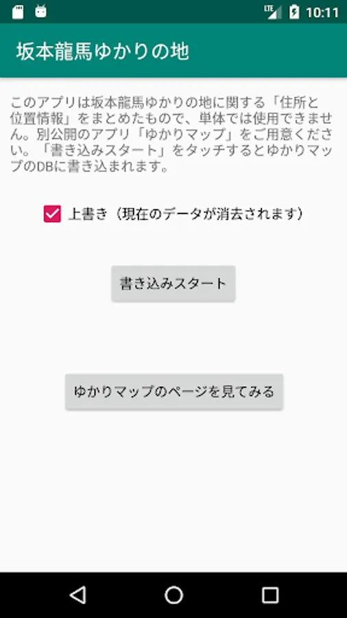 This app supplies data for another app "Yukari Map" and can not be used alone. Please prepare "Ykari Map" application in advance.