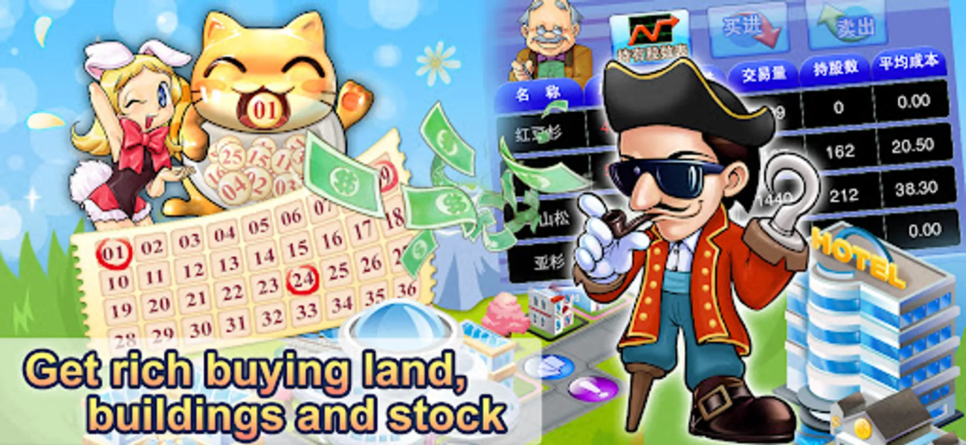● Beware of the gods! Get possessed by Fortune Gods which will help you build, earn more rent or pay less rent, but avoid Misfortune Gods along the way!