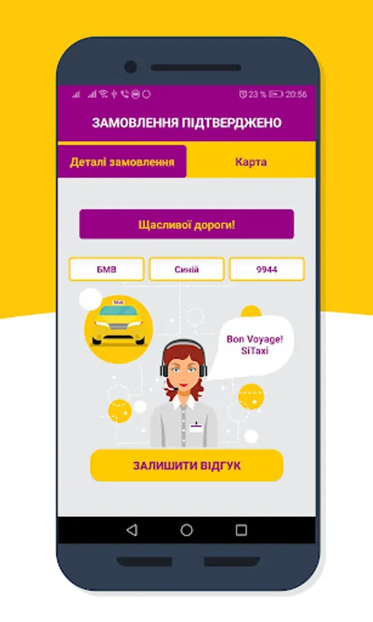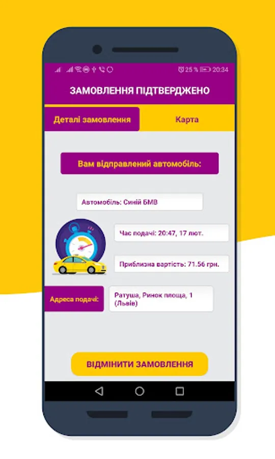 Even when ordering a taxi, you will know the make, number, color of the car, the time of filing and the estimated cost of the trip. Moreover, you can monitor the movement of your ordered car and see a message about how the status of your taxi order changed when the car came and the driver was waiting for you.