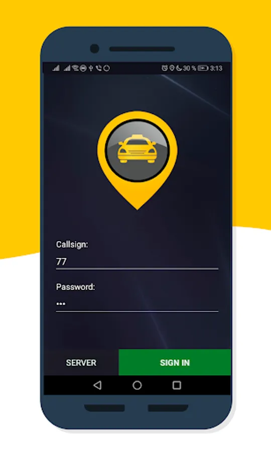 For connecting and log in application is required pre-registration in the cabs (taxi) service, which will provide data.