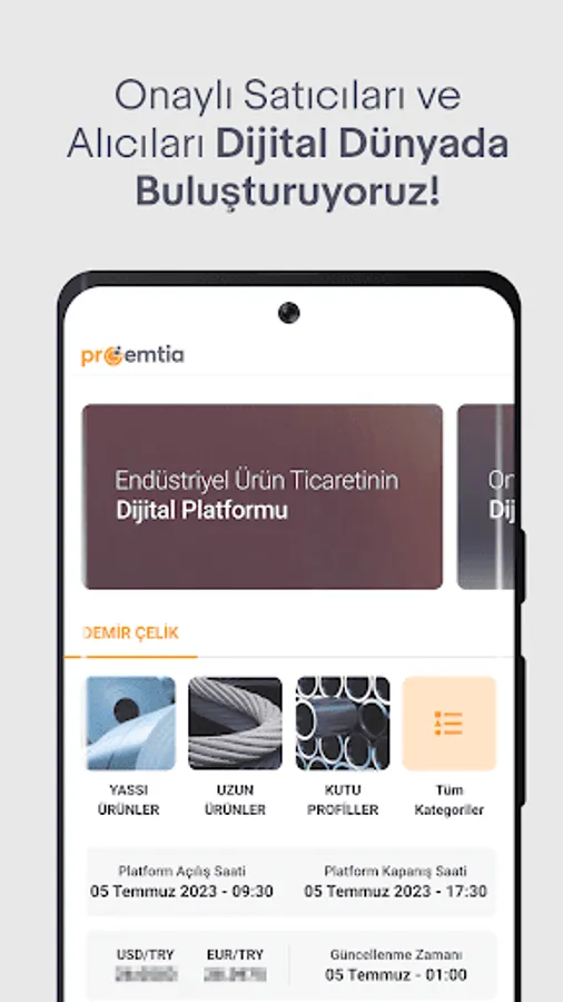 Proemtia is a reliable digital marketplace platform developed by Isbank Group to mediate the trade of industrial products and commodities, starting with iron and steel products. We facilitate trade by bringing together buyers and sellers of iron and steel products from different points of Turkey on the same platform.