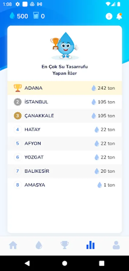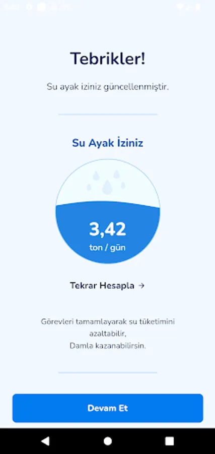 For a sustainable world, it is our duty to protect our natural resources and to consume them consciously. Water is one of our most critical natural resources. SUNA learns your usage habits through a set of questions, calculates your water footprint, and raises awareness with tasks that will allow you to save water, as well as allowing you to collect Drops that you may have various benefits in the future. By doing all these, you also contribute to the city you live in climbing up the list of leading cities in water saving!