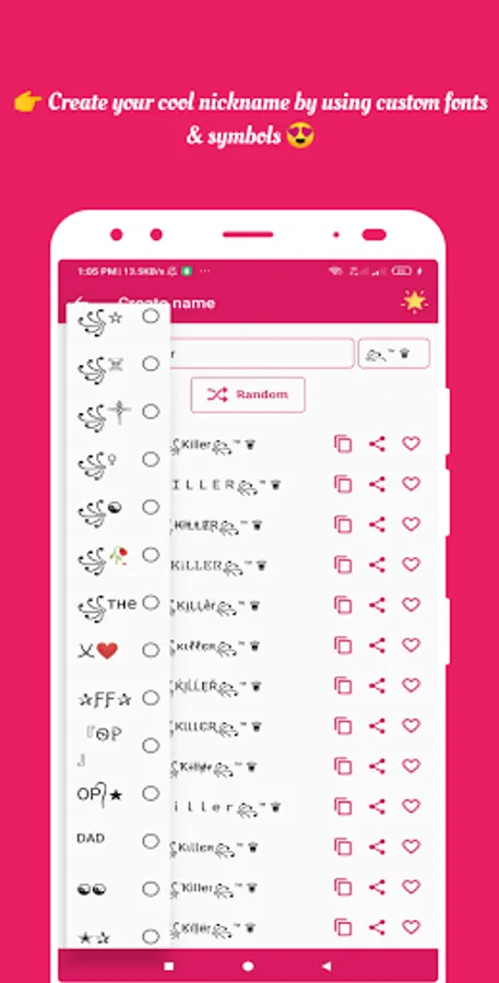 The random name generator solves many problems. With this nickname finder app, you can generate thousands of free nicks with super cool fonts and stylish texts.
