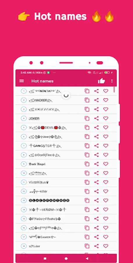 Download this easy, fast and free app and look like a "Hero" with a super stylish name in your games. You can generate a random name and modify it to your liking.