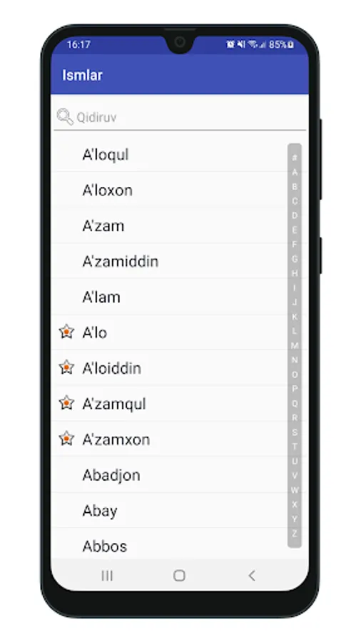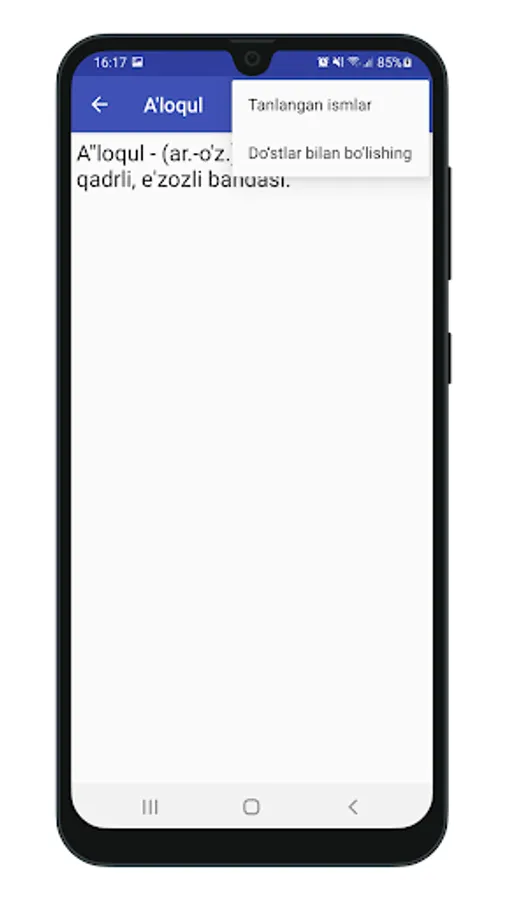 Ilovada o‘zbek tilidagi ismlarning ma’nolari mavjud.