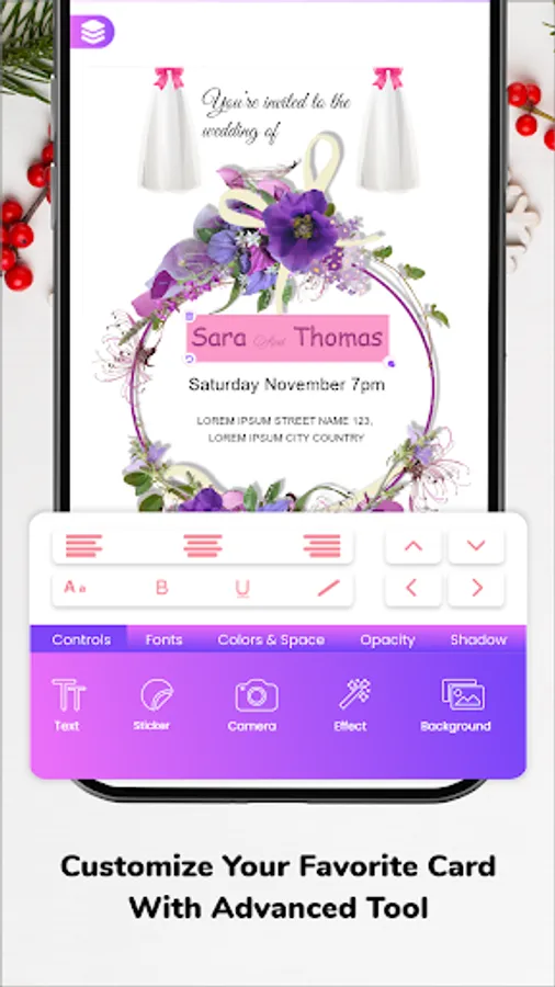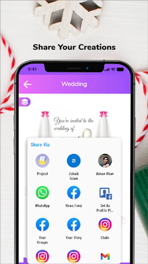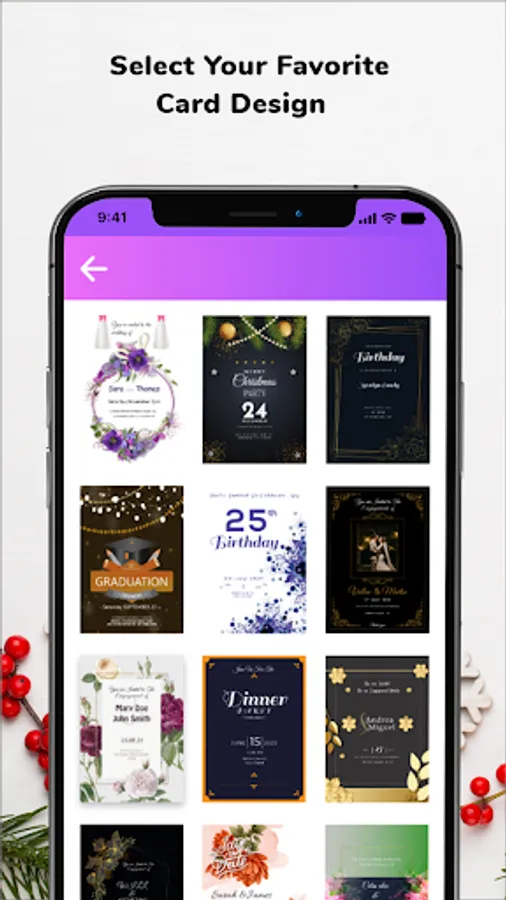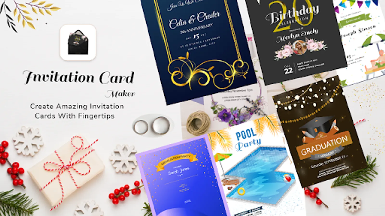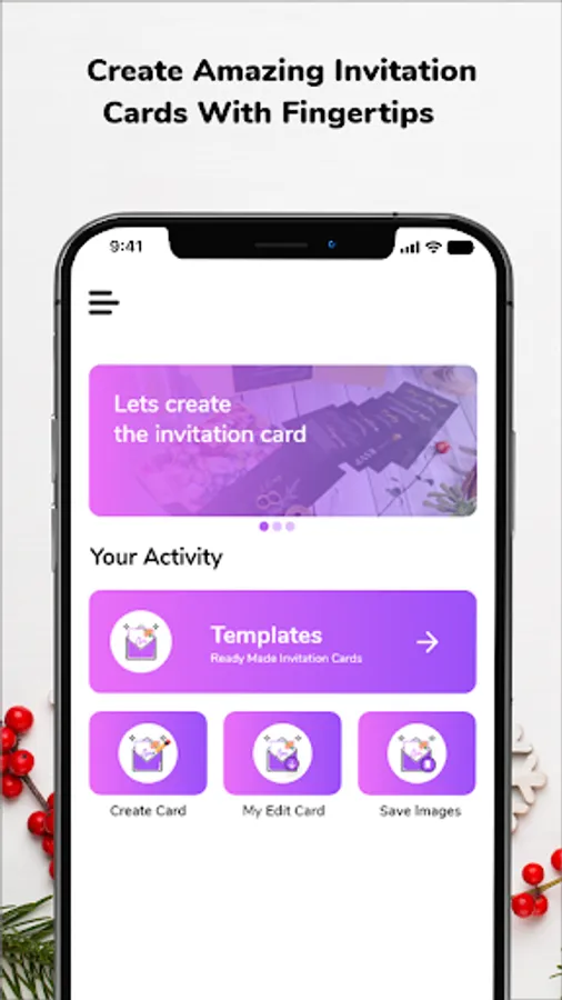 Send digital created cards, invites and greeting cards to your love ones by using invitation card maker application.