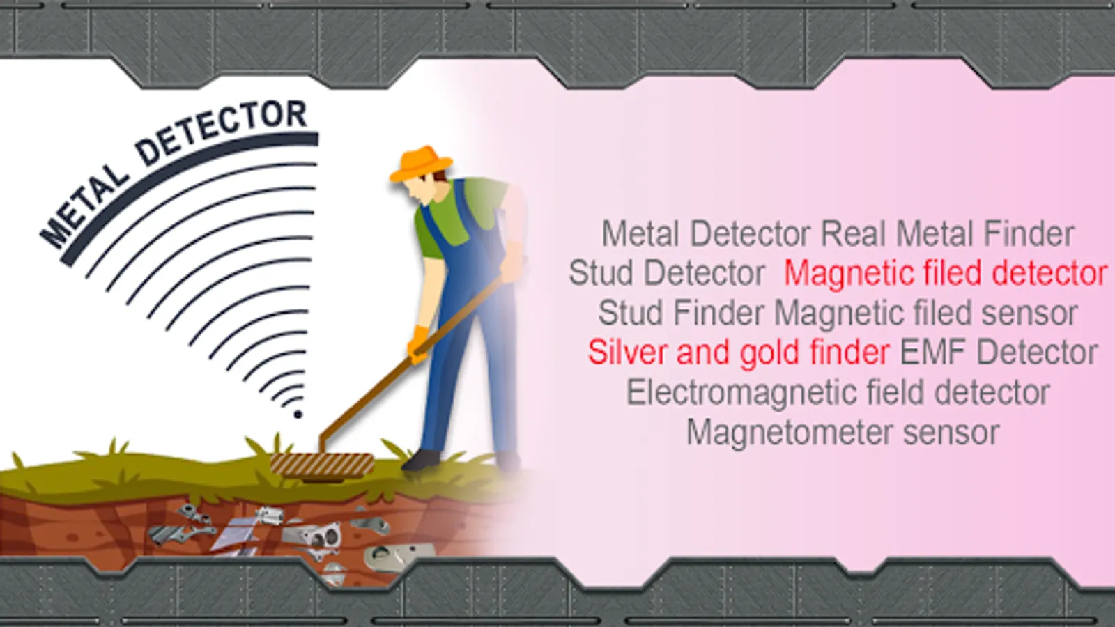 NOTE: Metal Detector require a magnetic sensor (magnetometer),If this metal detector app not work properly than please check your android device specifications.