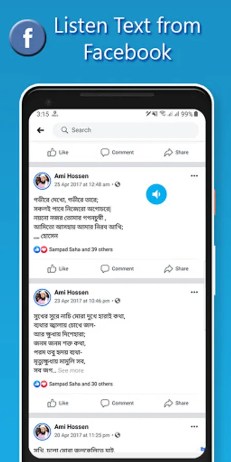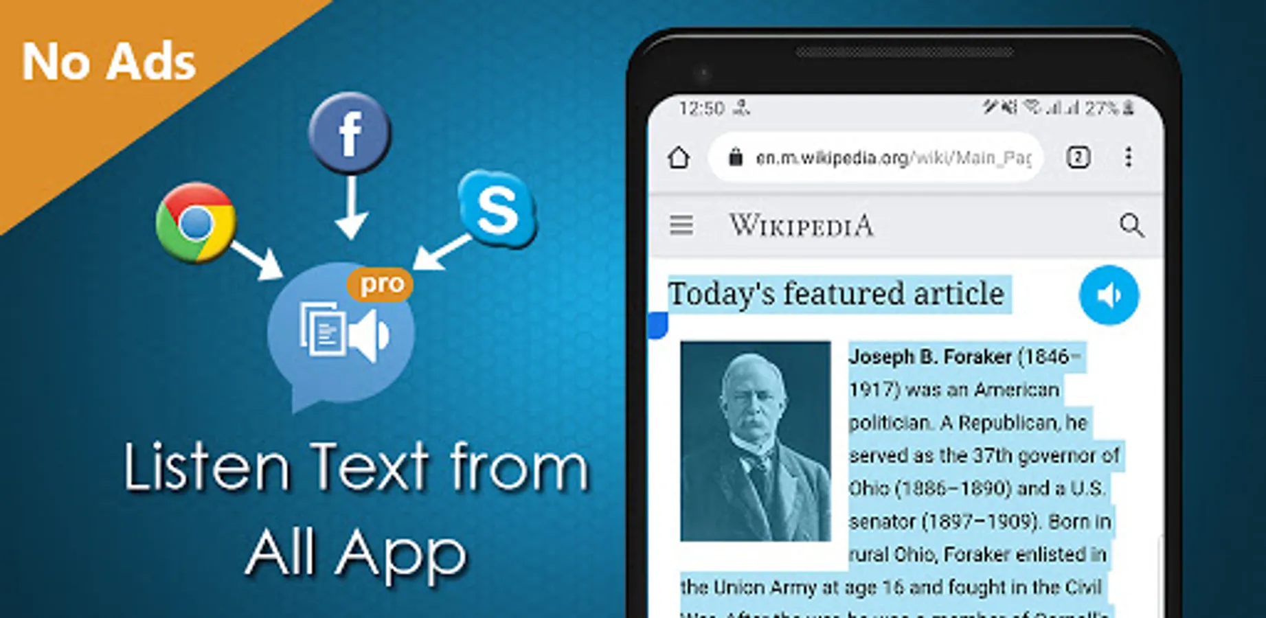 Text to Speech for All App Pro allows you to listen text from all application. Text reader popup button shows all around your android device. Copy text from any application and press listen button to listen copied text. Text to Speech popup button helps users to convert text to voice from any application of their android device. Users can listen text from google chrome, Firefox, UC Browser, Facebook, Twitter, Instagram, messenger or any other application by this Text to Speech application.