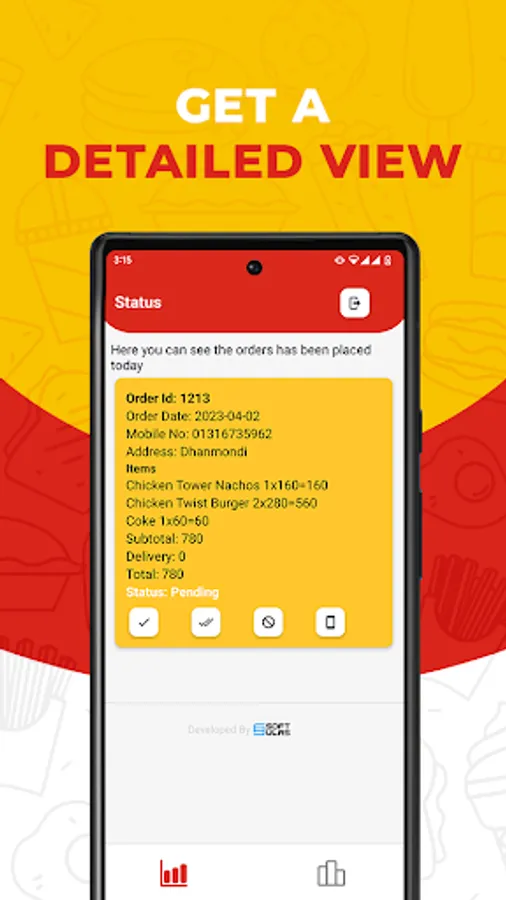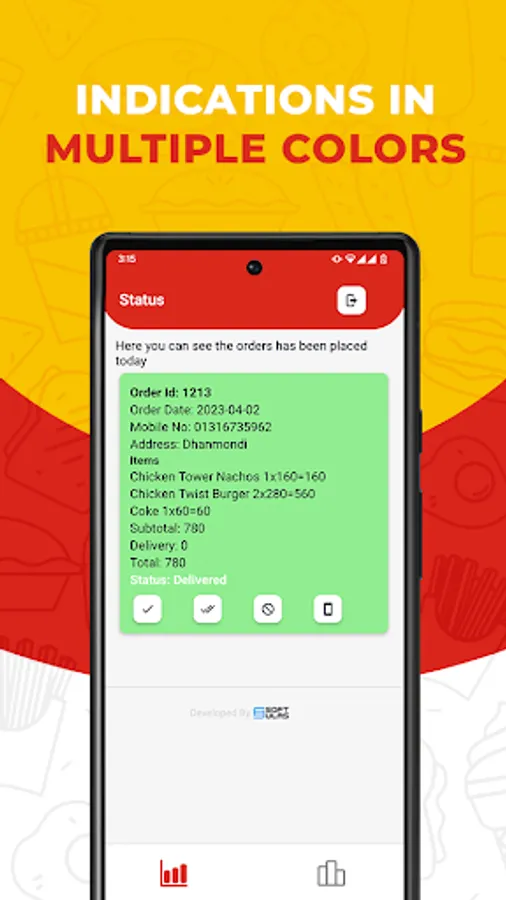 The app is designed to be user-friendly and easy to navigate, with a clear and concise interface. It allows businesses to manage their orders efficiently, keeping track of which orders have been fulfilled and which are still pending.