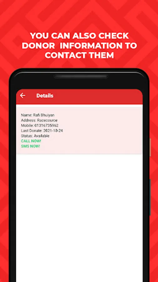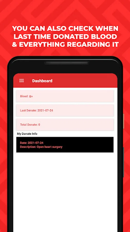 ✔Donor Details(Blood Group, Last Donate, Total Donate, Status, Location)