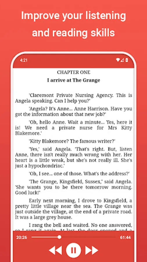 So, whether you're looking to relax with a bedtime story and story telling in English, wanting to improve your English listening and comprehension skills, or wanting to immerse yourself in a thrilling adventure, our English Audio Stories app has something for everyone. Download now and start listening to your favorite stories today!