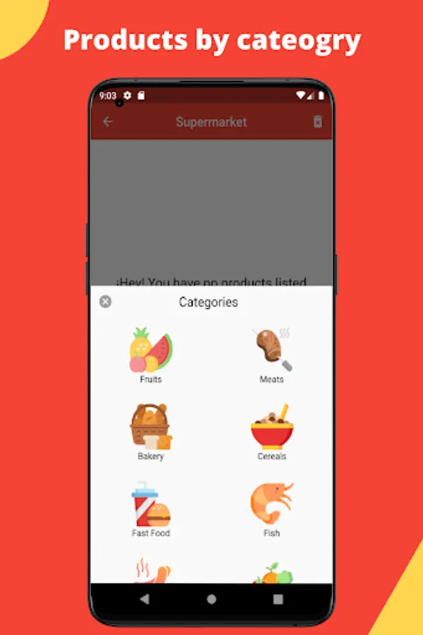Shopping Lists has categories in which the products are divided in a simpler way to locate the products within our application.