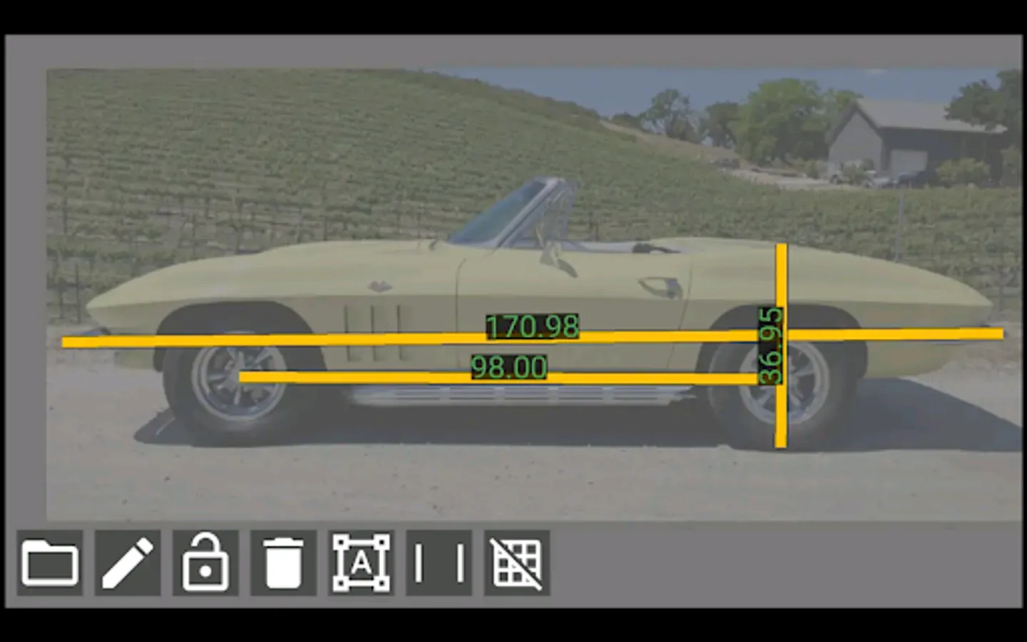 The app is for 2D image, but you can transform perspective image into a plane so you can measure them (in that case you need to have TWO known lengths as vertical and horizontal as the reference)